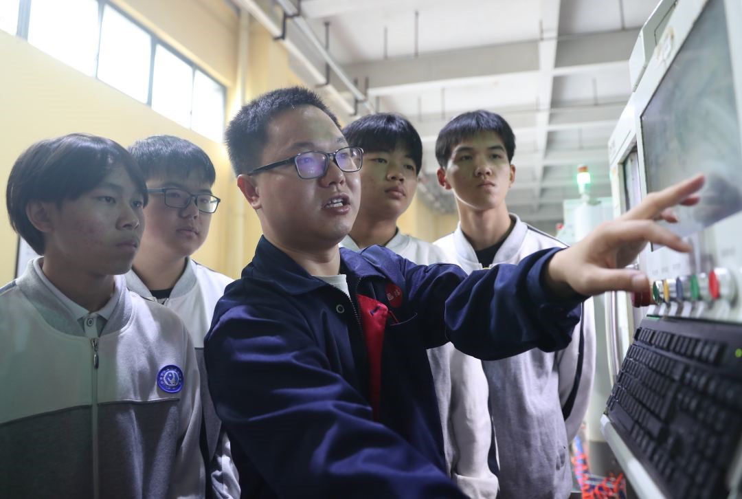 (华蓥职业学校老师正在给学生进行岗前实践培训)